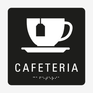 BYGGVARUBEDÖMDTaktil skylt m. brailleskrift CAFETERIA